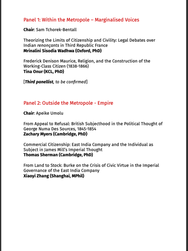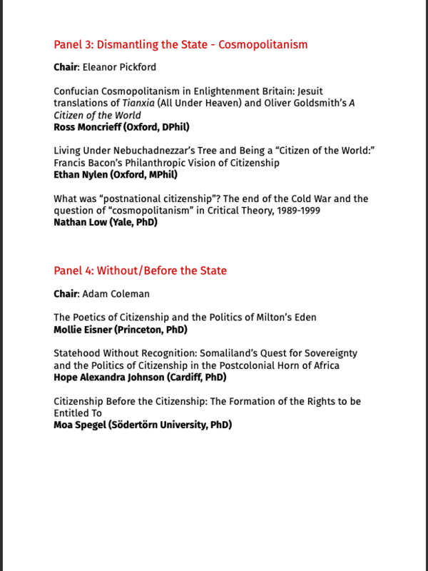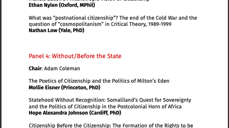 Theme: "Self and State: Intellectual Histories of Citizenship”