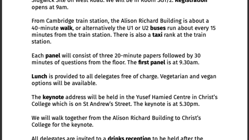 All delegates are invited to a free lunch and drinks reception allowing for networking with students and academics alike.