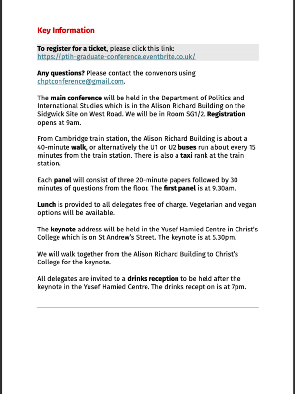 To register for a ticket, please click this link: https://ptih-graduate-conference.eventbrite.co.uk/.